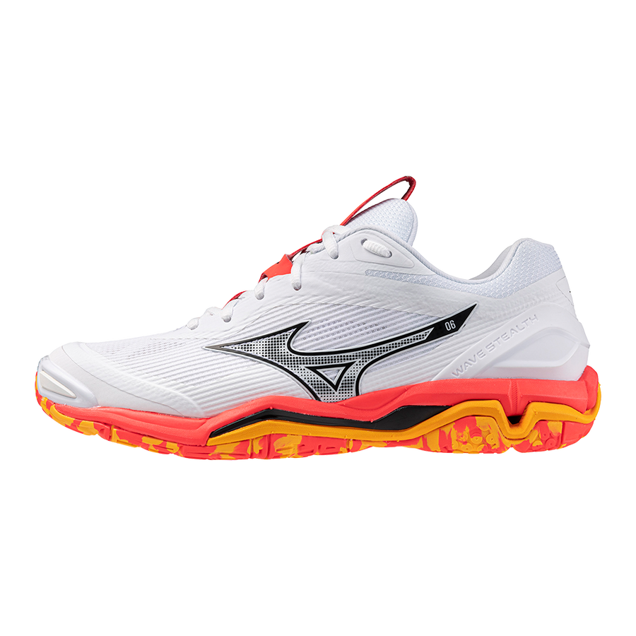 Mizuno Wave Stealth 6 – Handbalschoenen – Wit/Oranje